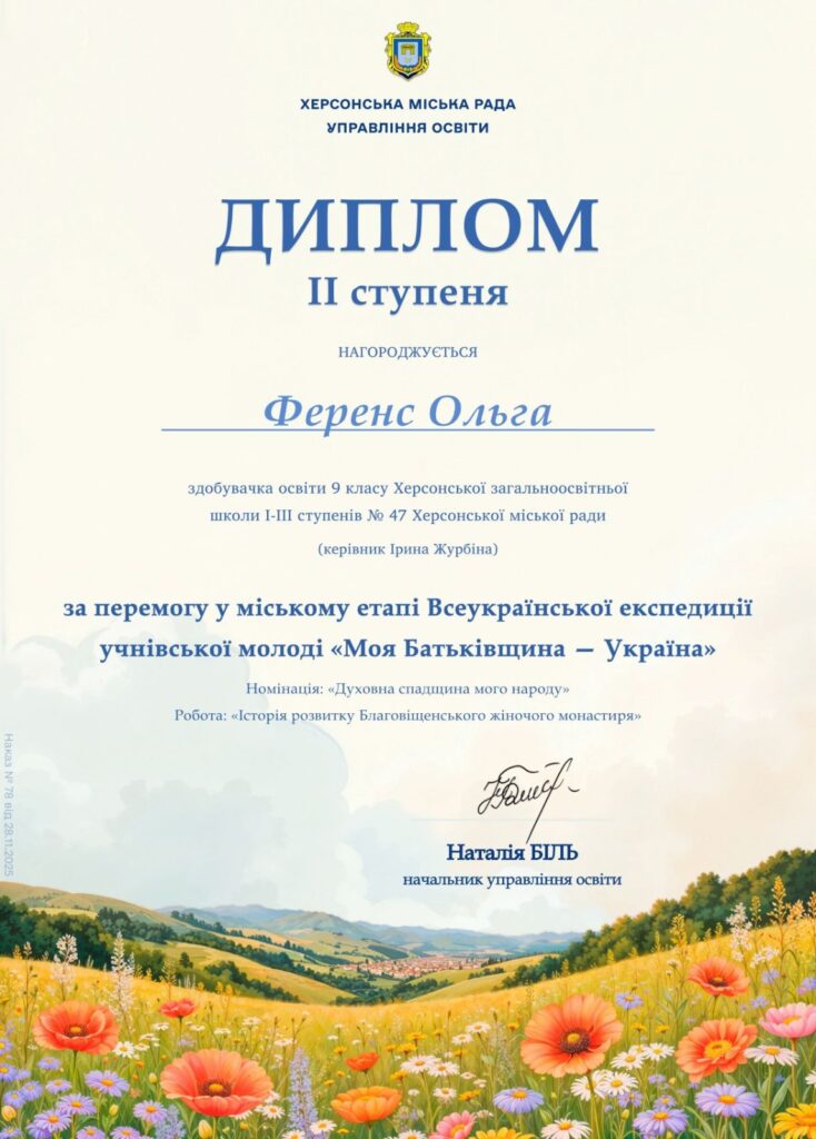 Вітаємо нашу ученицю 9А класу Ференс Ольгу за перемогу у міському етапі Всеукраїнської краєзнавчої експедиції учнівської молоді «Моя Батьківщина – Україна».
