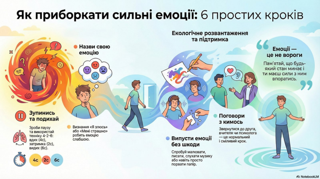Зупинись, подихай, назви свою емоцію, випусти її без шкоди та не бійся попросити підтримки.