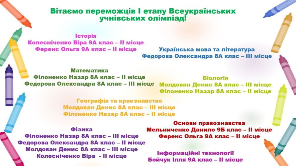 Вітаємо переможців І етапу Всеукраїнських учнівських олімпіад!